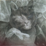 I like developing an image with a twist in my paintings, like what would Modigliani’s cat look like, or Picasso’s, or Matisse’s? Can an ordinary highway interchange really look like a goddess when seen from an airplane? What if animals had human eyes? Would we treat them differently? Would they be humanized?